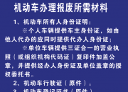 東莞市汽車報廢個人車:1.機動車行駛證(原件);2.機動車登記證(原件);3.車輛牌照;4.機動車所有人身份證(原件+復印件)5.事故車輛(特殊車輛)證明材料。東莞市汽車報廢公司車:1.機動車行駛證(原件);2.機動車登記證(原件);3.車輛牌照;4.加蓋公章的營業(yè)執(zhí)照(復印件)。